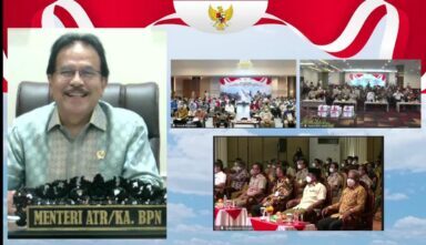 Menteri ATR/BPN Sofyan A Jalil saat menyerahkan Sertifikat Tanah untuk masyarakat Kalteng secara virtual, Jum’at (10/12/2021). (Media Dayak/MMC Kalteng)