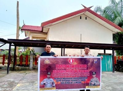 “Beberapa kegiatan yang kami laksanakan diantaranya menyampaikan himbauan melalui pembentangan spanduk tentang karhutla dan sosialisasi, agar tidak melakukan pembakaran Hutan dan Lahan, serta penyampaian sanksi dan peraturan yang mengatur tentang Karhutla yang isinya adalah Pembakaran hutan dan lahan diancam hukuman 10 (sepuluh) tahun dan denda Rp.10.000.000.000,00,. (sepuluh miliar rupiah) sebagaimana diatur dalam Undang-Undang No.41 tahun 1999 tentang Kehutanan, Undang-Undang No.32 tahun 2009 tentang Perlindungan dan Pengelolaan Lingkungan Hidup, Undang-Undang No.39 tahun 2014 tentang Perkebunan,” tegasnya.(Hms/Lsn)