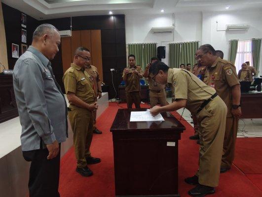 Penandatanganan dari kegiatan tersebut oleh kepala Inspektorat Kabupaten Katingan Deddy Feraz yang disaksikan oleh Asisten II Setda Katingan Adventus.(Media Dayak/Ist)
