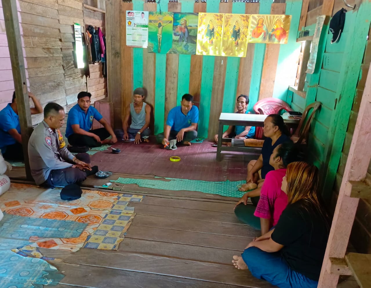 Bhabinkamtibmas Desa Tumbang Darap, AIPTU M. Nur Cahyo, melaksanakan kegiatan sambang masyarakat di Desa Tumbang Darap Kecamatan Seruyan Hulu, Sabtu (17/5/2025).(Media Dayak/Ist)