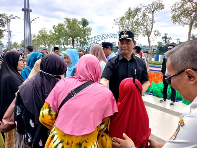 Dalam kegiatan tersebut, Bupati H. Shalahuddin secara langsung menyerahkan paket sembako gratis kepada masyarakat sebagai bentuk kepedulian pemerintah daerah dalam membantu kebutuhan pokok warga, khususnya menjelang bulan suci Ramadan.