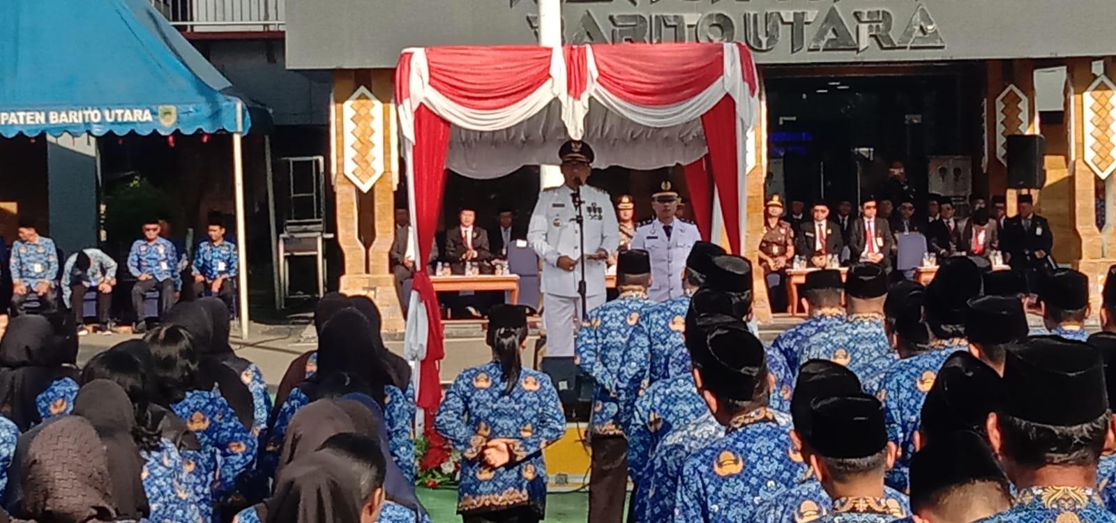 Apel tersebut dipimpin langsung oleh Bupati Barito Utara, H. Shalahuddin, S.T., M.T., dan diikuti oleh Wakil Bupati, Sekretaris Daerah, jajaran kepala perangkat daerah, Organisasi Perangkat Daerah (OPD), para camat, serta tamu undangan lainnya.