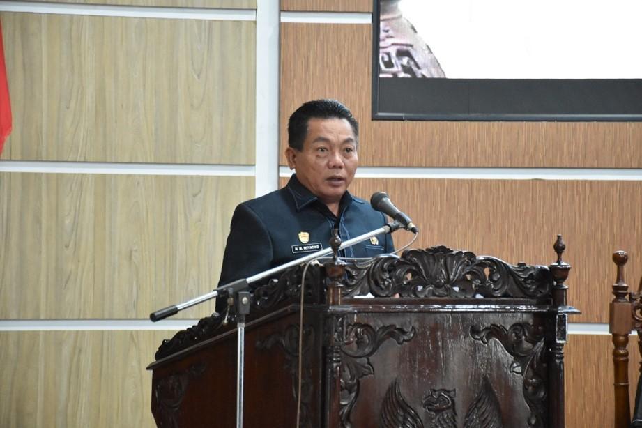 JAWABAN – Bupati Kapuas Muhammad Wiyatno menyampaikan jawaban kepala daerah atas pemandangan umum fraksi-fraksi