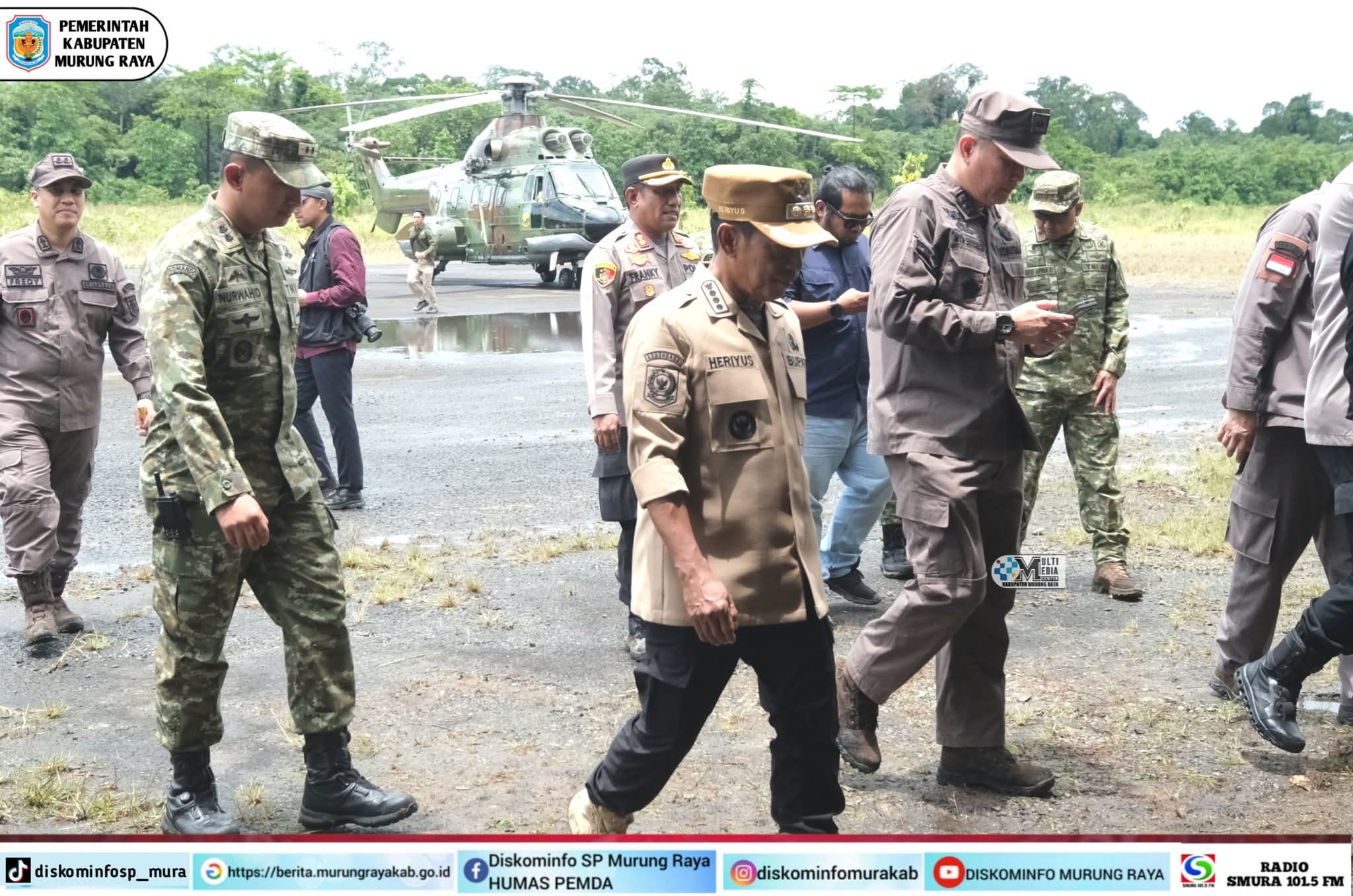 Bupati Murung Raya (Mura), Heriyus menyambut Kunjungan Kerja (Kunker) Menteri Pertahanan Republik Indonesia (Menhan RI), Sjafrie Sjamsoeddin bersama Satuan Tugas Penertiban Kawasan Hutan (Satgas PKH) di wilayah operasional PT. Asmin Koalindo Tuhup (AKT), Desa Tumbang Bauh, Kecamatan Barito Tuhup Raya, Selasa (7/4/2026).