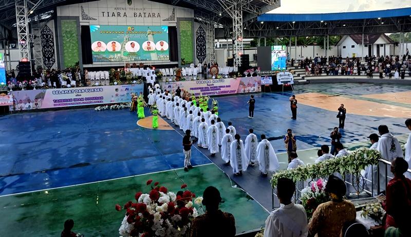 TAHBISAN IMAM DIOSESAN KEUSKUPAN PALANGKA RAYA-Diosesan Keuskupan Palangka Raya Paroki Santa Maria De La Salette melaksanakan kegiatan tahbisan imam, di arena Tiara Batara, Rabu (22/4/2026).(Media Dayak/Lana)