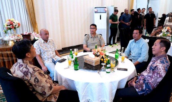 RAMAH TAMAH BERSAMA WAKAPOLDA-Wakil Bupati Felix Sonadie Y Tingan didampingi Sekda Muhlis, unsur FKPD, staf ahli bupati, asisten sekda, kepala perangkat daerah melaksanakan ramah tamah dan makan malam bersama waka Polda Kalteng Brigjen Pol Drs Yosi Muhamartha di rujab bupati, Senin (13/4) malam.(Media Dayak:Diskominfosandi)