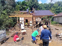 “Kita bisa bangun baru karena dana sebesar Rp 15 juta hanya untuk belanja bahan bangunan, sedangkan untuk kegiatan pembangunan warga bergotong royong tanpa upah, bahkan ada warga yang menyumbang bahan makanan dan minuman,” jelasnya.