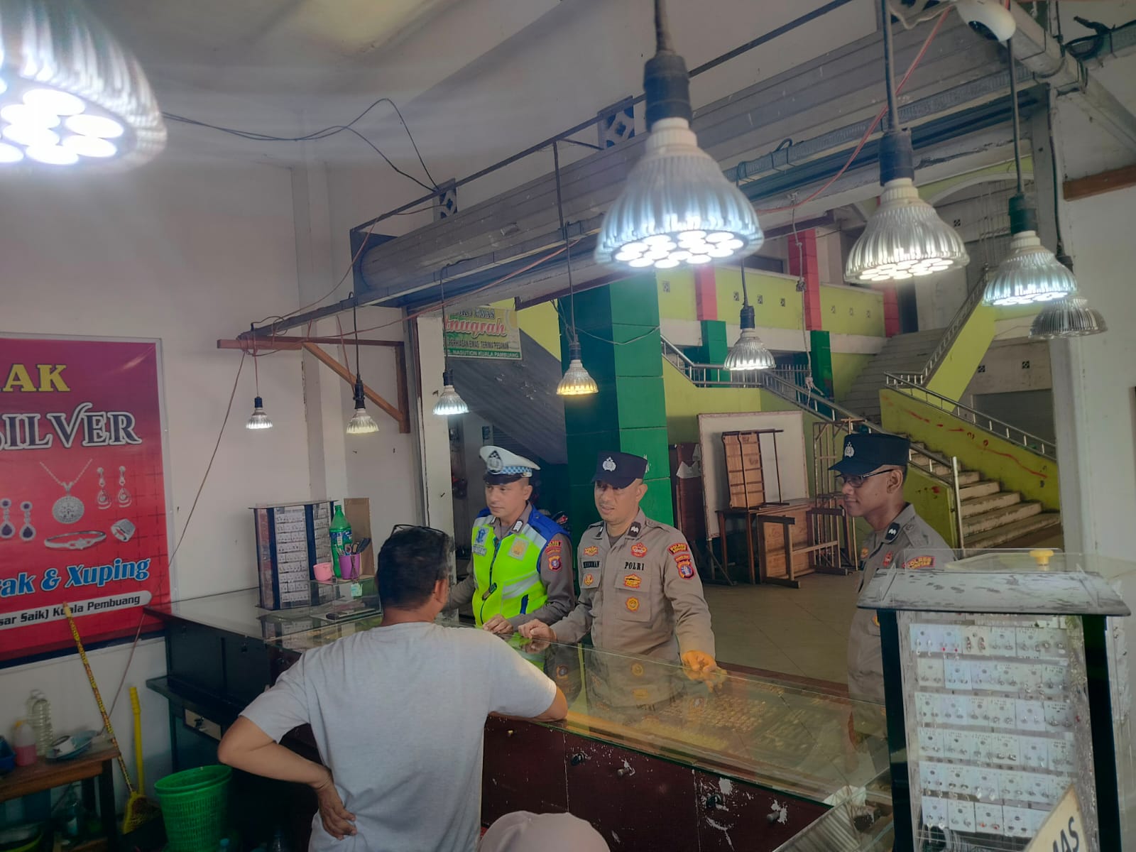 Personel Satlantas Polres Seruyan beserta Satfung Polres Seruyan berdialogis dengan pedagang di pasar untuk tidak segan berkoordinasi dengan Polres Seruyan mengenai keamanan lingkungan sekitar serta segera melaporkan jika melihat seseorang yang terasa sangat mencurigakan.