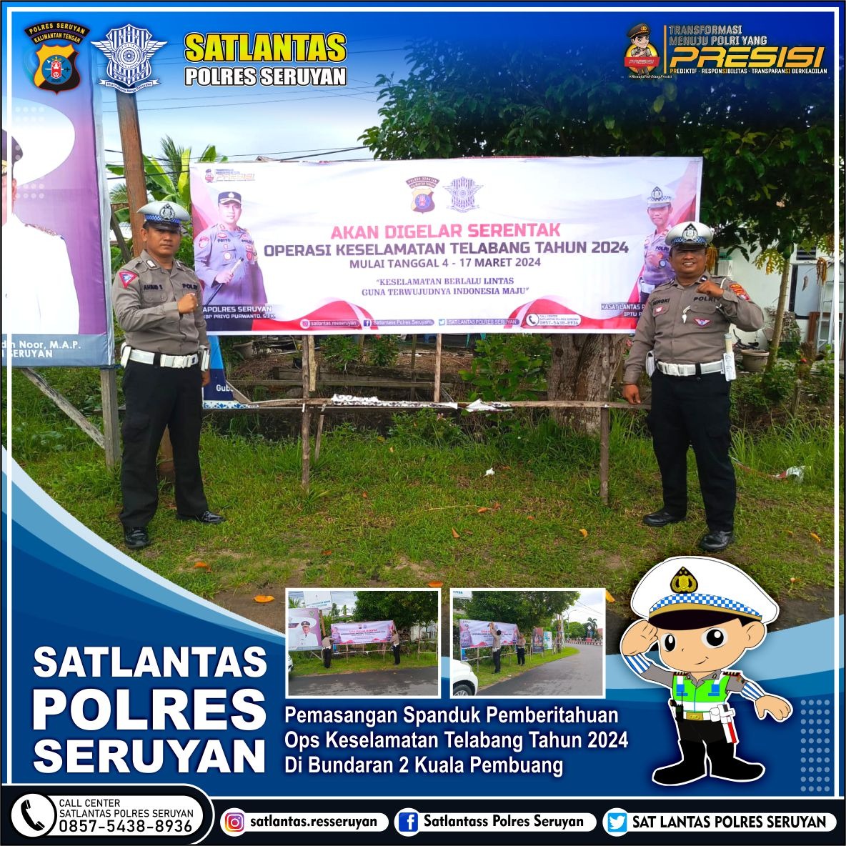 Kapolres Seruyan AKBP Priyo Purwanto, S.I.K. melalui Kasat Lantas Polres Seruyan IPTU Prio Amboro, S.T. mengatakan, spanduk dipasang guna memberikan informasi kepada masyarakat sekitar bahwa dalam waktu dekat akan digelar Ops Keselamatan Telabang Tahun 2024.