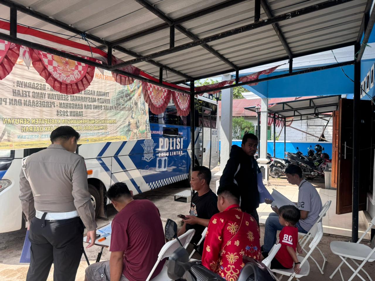 Komitmen Polres Seruyan dalam memberikan pelayanan prima dan memudahkan masyarakat terus digencarkan. Hari ini, Kamis (29/1), Satpas 2333 Satlantas Polres Seruyan menyapa warga di Kecamatan Danau Seluluk melalui layanan Bus SIM Keliling. Bertempat di halaman depan Kantor Desa Rungau Raya, kegiatan ini menjadi solusi bagi warga yang ingin memperpanjang masa berlaku SIM A maupun SIM C tanpa harus menempuh perjalanan jauh ke pusat kota. Sejak pukul 09.00 WIB, antusiasme warga mulai terlihat seiring dengan hadirnya unit pelayanan jemput bola ini.