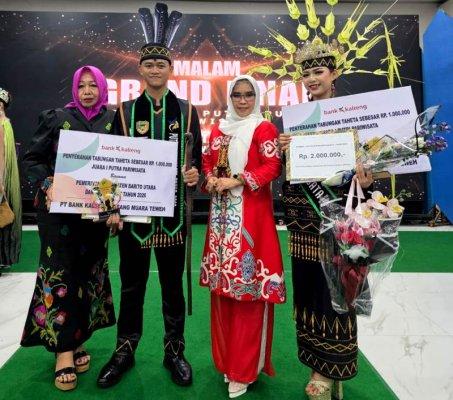 JUARA PUTRA PUTRI PARIWISATA-Kadis dan Sekdis Budparpora Barito Utara bersama pemenang (juara) pemilihan Putra Putri Pariwisata Kabupaten Barito Utara tahun 2026, di Gedung Balai Antang, Rabu (15/4) malam.(Media dayak:Disbudparpora)