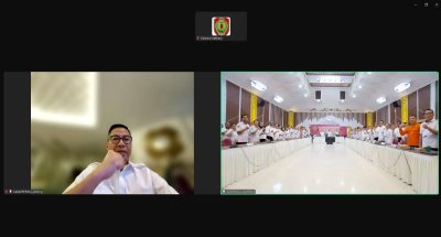 Kepala BAPPERIDA Provinsi Kalteng Leonard S Ampung saat menyampaikan sambutan via Zoom Meeting, Rabu (19/2/2025)(MMC Kalteng)