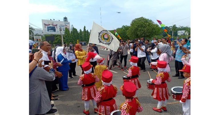 Dengan mengibarkan bendera strart Bunda Paud Kalteng Yulistra Ivo Azhari Sugianto Sabran di dampingi Plt. Kepala Dinas Pendidikan Kalteng Mofit Saptono Subagio, melepaskan langsung peserta Gebyar Anak Nusantara tahun 2019.