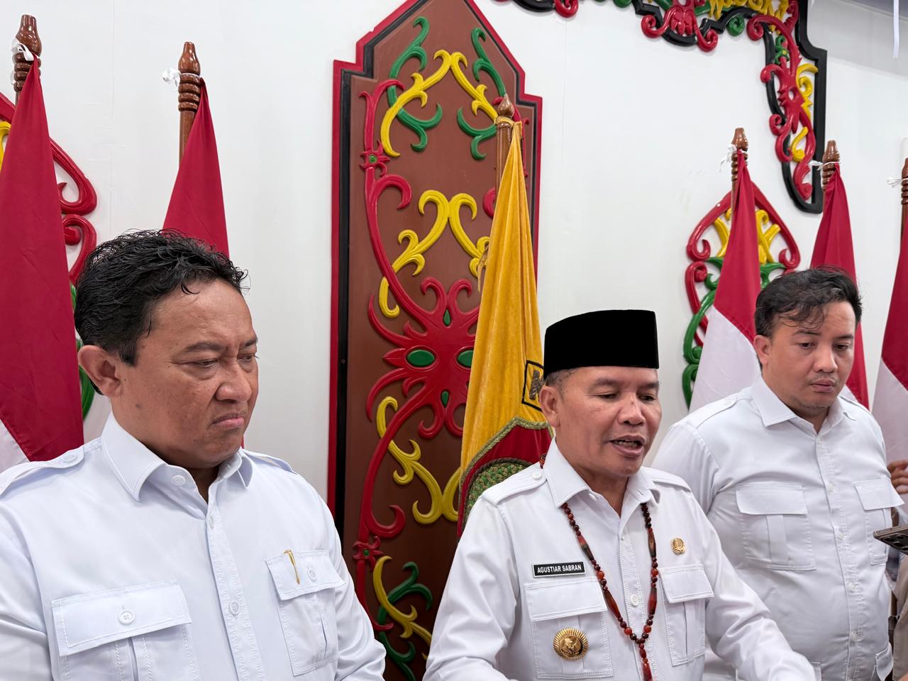 Gubernur Kalteng Agustiar Sabran didampingi Wagub Kalteng Edy Pratowo saat jumpa pers di Rujab Gubernur Kalteng, Rabu (25/2/2026)(Media Dayak/ Yanting)