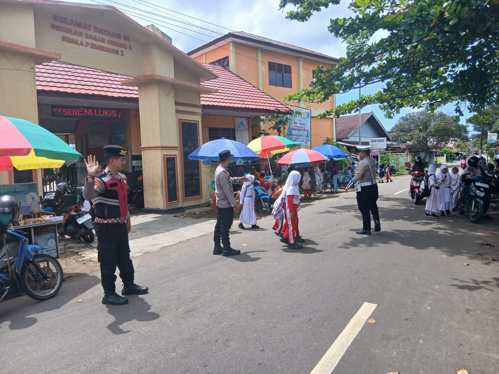 Menjelang jam pulang sekolah, fokus kegiatan bergeser ke area SDN 1 Kuala Pembuang I. Personel sigap berdiri di titik-titik penyeberangan untuk membantu para siswa menyeberang jalan dengan aman di tengah padatnya arus kendaraan saat jam pulang sekolah.