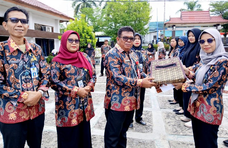 BERIKAN REWARD-Kepala Dinas Nakertranskop UKM Barito Utara HM Mastur berikan reward dan apresiasi kepada sejumlah ASN yang dinilai berprestasi dan berdedikasi tinggi dalam menjalankan tugas, Jumat (24/10/2025) di halaman dinas setempat.(Media Dayak/Dok Disnakertranskop UKM Barut)