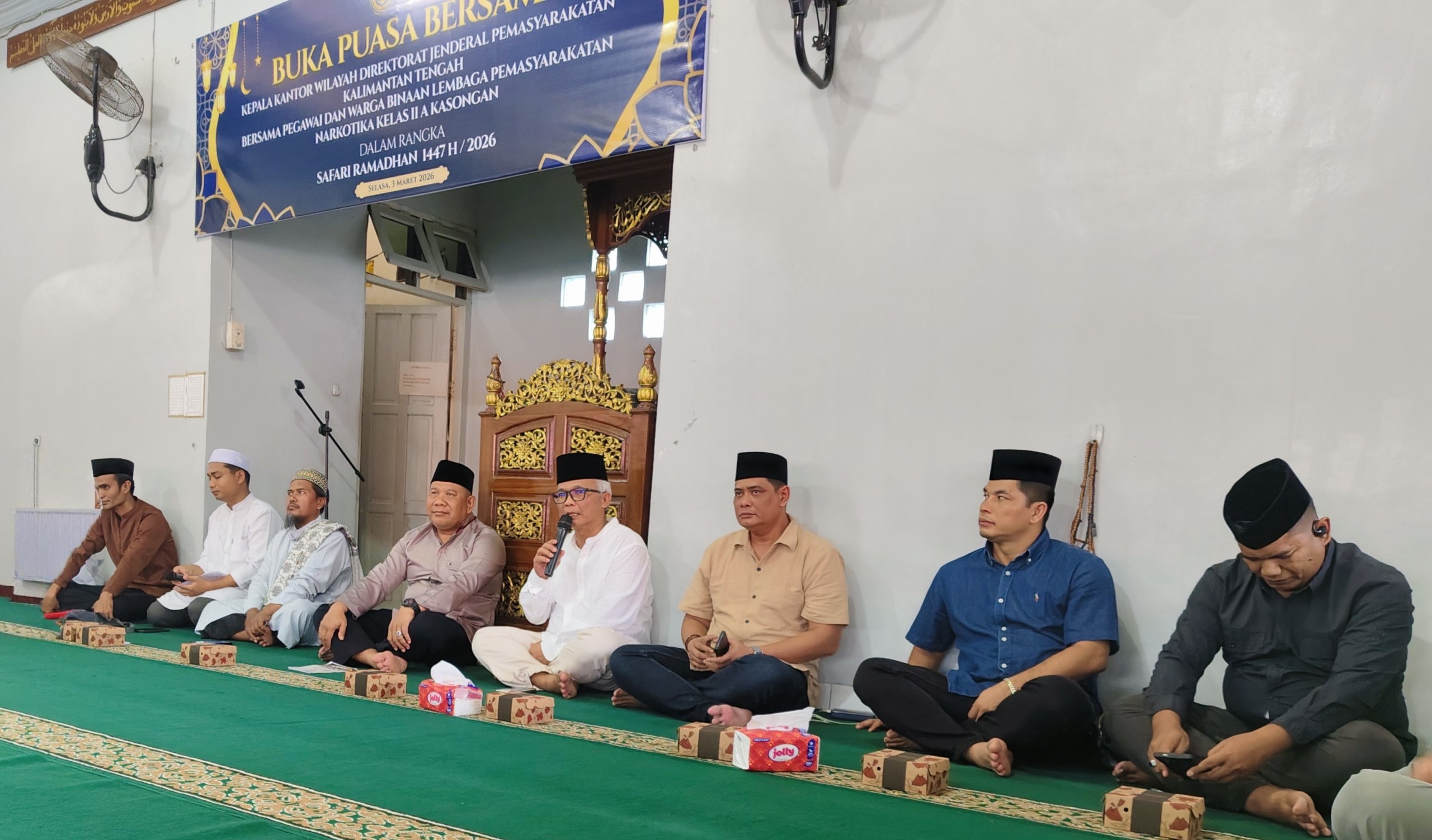Pelaksanaan Safari Ramadhan yang dipimpin langsung oleh kepala Kanwil Ditjen Pemasyarakatan Provinsi Kalteng I Putu Murdiana yang disambut baik oleh kepala Lapas Narkotika Kelas IIA Kasongan Batara Hutasoit beserta jajarannya pada petang menjelang Maghrib itu, dihadiri pula oleh sejumlah pejabat administrator Kanwil Ditjen setempat, kepala UPT Pemasyarakatan se Kota Palangka Raya dan seluruh Pegawai JFT, JFK, CPNS serta ratusan Warga Binaan Pemasyarakatan (WBP) Lapas Narkotika kelas IIA Kasongan, serta ustadz Baihaqi.