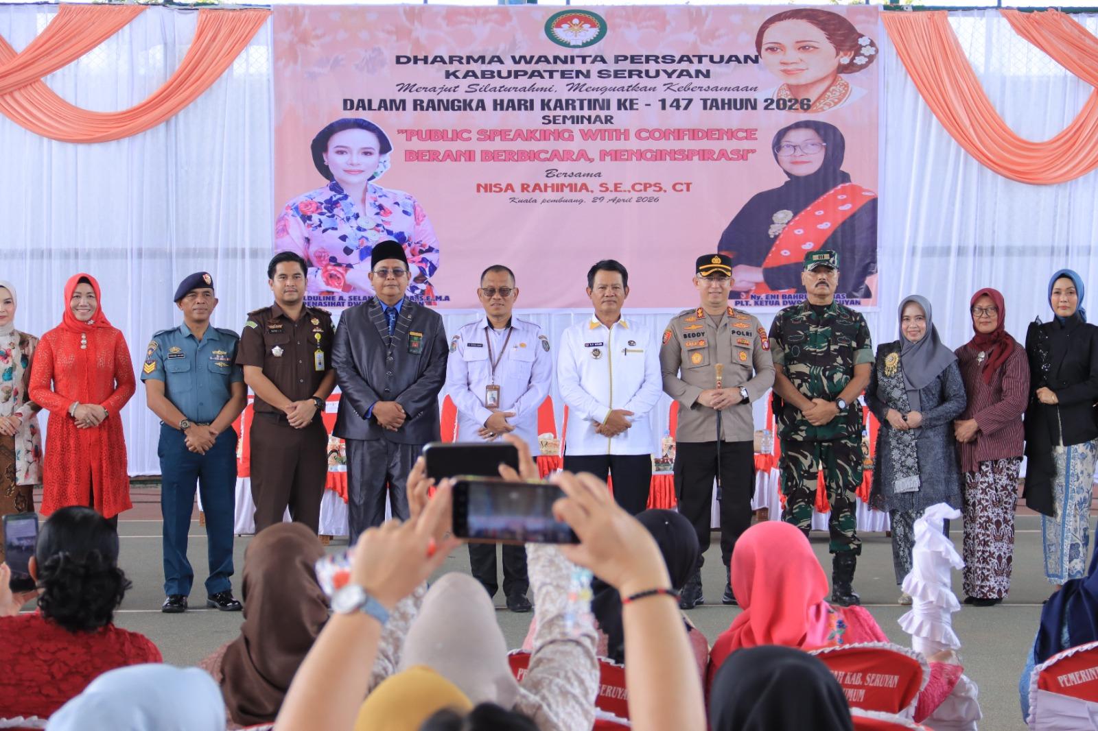 Kapolres Seruyan AKBP Beddy Suwendi, S.H., S.I.K., didampingi Ketua Bhayangkari Cabang Seruyan Ny. Putri Beddy menghadiri kegiatan Silaturahmi dan Seminar dalam rangka Peringatan Hari Kartini ke-147 Tahun 2026 yang digelar di Lapangan Tenis Indoor Kuala Pembuang, Rabu (29/4/2026) pagi.