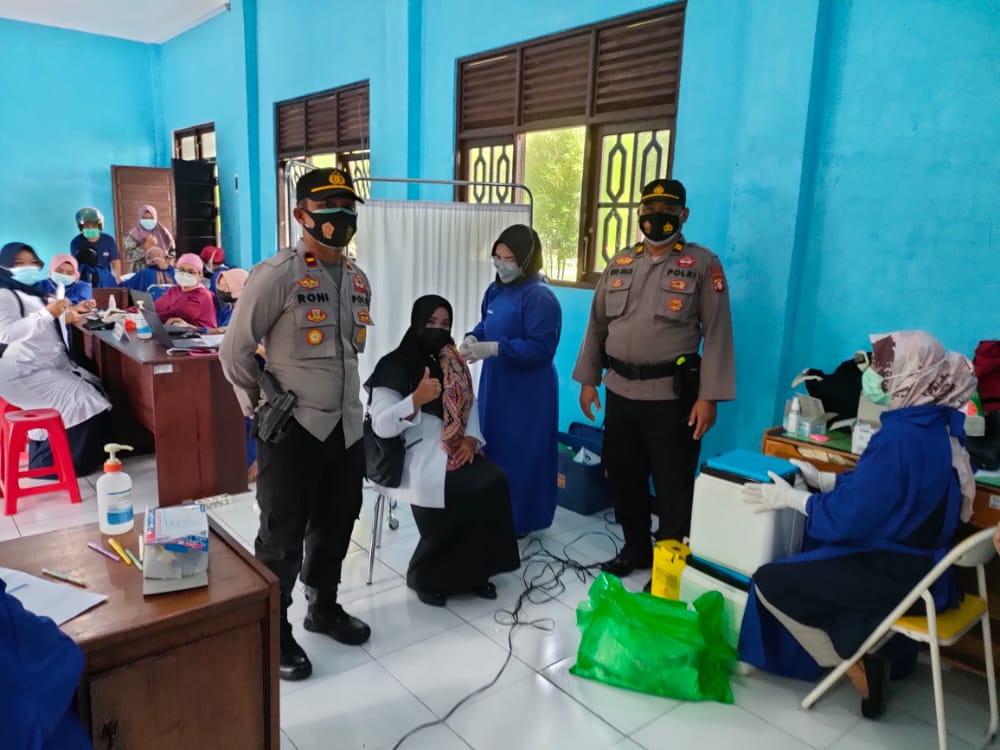 Polsek Seruyan Hilir laksanakan Pengamanan dan monitoring kegiatan vaksinasi Covid-19 di aula SMPN 1 Kuala Pembuang, Rabu (14/07/2021).
