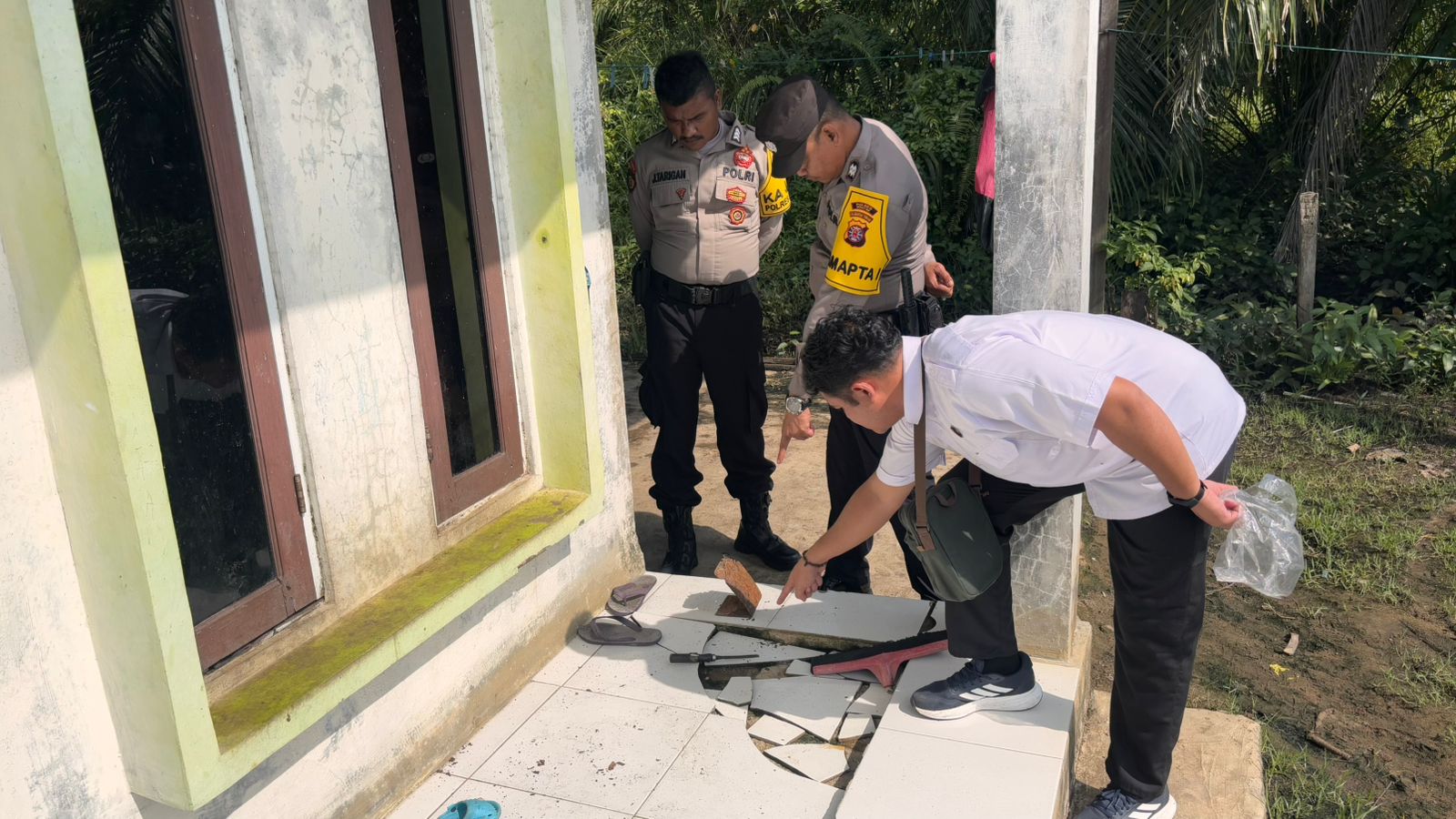 Setibanya di lokasi, petugas melakukan pemeriksaan di sekitar area rumah untuk memastikan kondisi aman serta mengantisipasi kemungkinan adanya gangguan lanjutan. Kehadiran personel di lokasi juga bertujuan memberikan rasa aman kepada korban dan masyarakat sekitar.