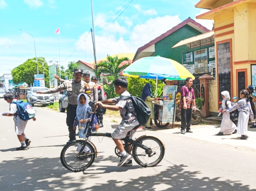 Pamapta Polres Seruyan Laksanakan Strong Point Siang dan Bantu Penyeberangan Siswa
