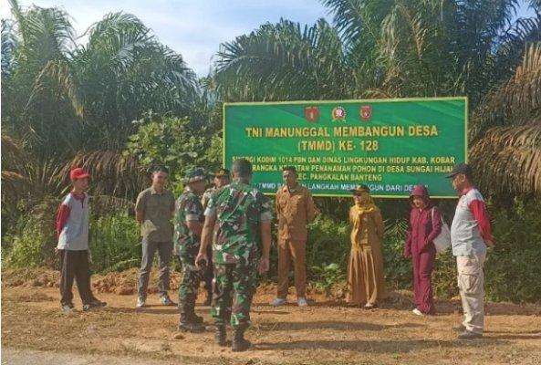 DLH Kobar dukung pelaksanaan kegiatan TMMD Reguler ke-128 Kodim 1014/Pangkalan Bun di kawasan Gerbang Desa Sungai Hijau Dusun 2, Kecamatan Pangkalan Banteng, (28/04) (Media Dayak/Ist)
