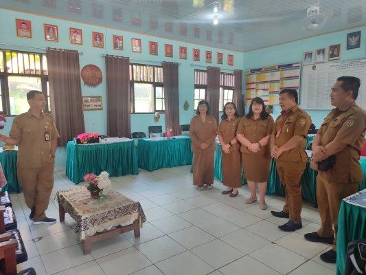 Kepala Disdik Kabupaten Katingan Arianson dan Kabid Pembinaan SD setempat Fransius Andhi beserta staf lainnya saat melakukan monitoring pelaksanaan TKA di SD Negeri 3 Kasongan Baru, jalan Revolusi – Kasongan beberapa hari yang lalu. (Media Dayak/Ist)
