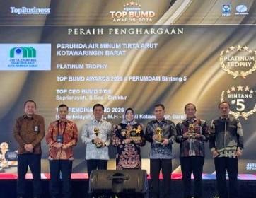 Tak hanya itu, Perumda Tirta Arut juga sukses membawa pulang empat penghargaan sekaligus, yakni Top BUMD Awards Platinum Trophy 2026, Top Pembina BUMD Awards 2026, Top Perumda Air Minum kategori pelanggan di bawah 30.000, serta Top CEO BUMD Awards 2026.