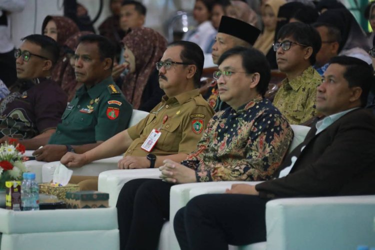 Asisten Ekobang Setda Provinsi Kalteng, Herson B Aden bersama pejabat yang menghadiri kegiatan Studium Generale bertema “Ekonomi Kreatif sebagai Pilar Pemberdayaan Generasi Muda” yang digelar di Aula UIN Palangka Raya, Selasa (10/2/2026)(Biro Adpim)