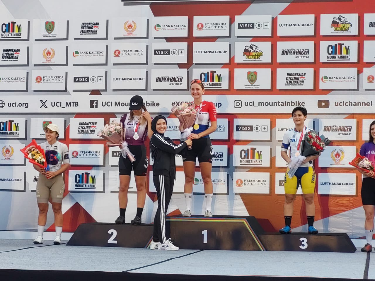 Didi De Vries, peraih juara pertama di kelas women elite UCI MTB Eliminator Word Cup 2024 seri ke 3, mengaku senang bisa memenangkan kompetisi balapan kali ini.