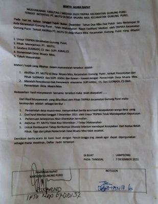 “Kami melakukan pembebasan lahan berdasarkan kesepakatan warga Desa Muara Mea. Jadi kami tidak membebaskan dari orang per orang,” kata Perwakilan Manajemen PT MUTU yang hadir saat mediasi di Lampeong, Joi Oroh, menjawab pertanyaan Kalamanthana.id, melalui platform WhatsApp, Jumat (10/12).
