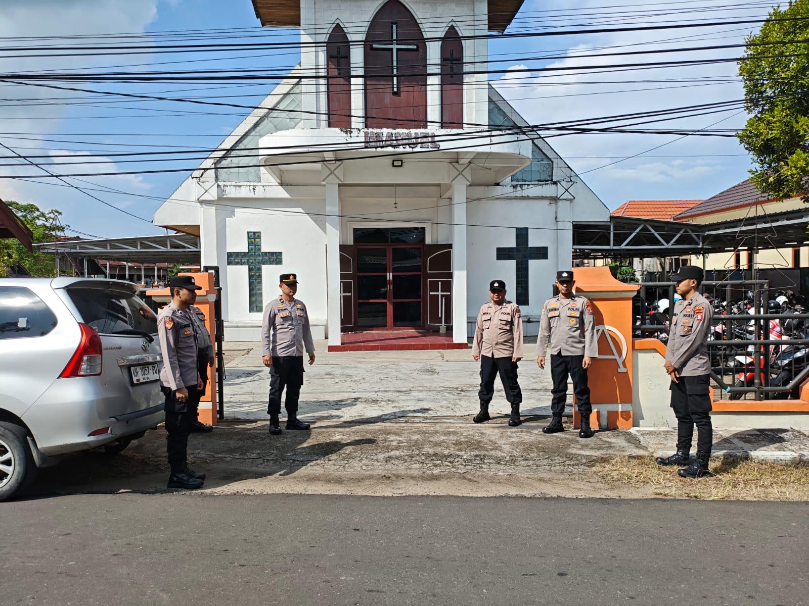 Dalam patroli tersebut, personel memeriksa keamanan di area gereja yang merupakan tempat ibadah, memastikan situasi pasar tetap kondusif, serta memantau arus lalu lintas di sepanjang jalan. Personel juga berdialog dengan petugas keamanan dan masyarakat sekitar untuk menyampaikan imbauan kamtibmas.