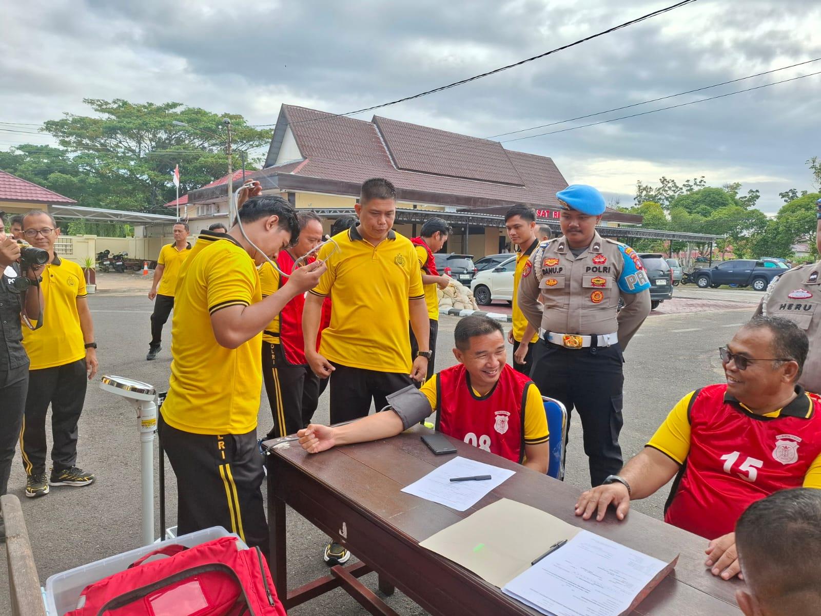 Personel Polres Seruyan mengikuti kegiatan Kesamaptaan Jasmani dan ujian Beladiri Polri Berkala Semester I Tahun Anggaran 2026 Gelombang II yang digelar di Mako Polres Seruyan pada Rabu (15/4/2026) mulai pukul 07.45 WIB hingga 09.15 WIB.