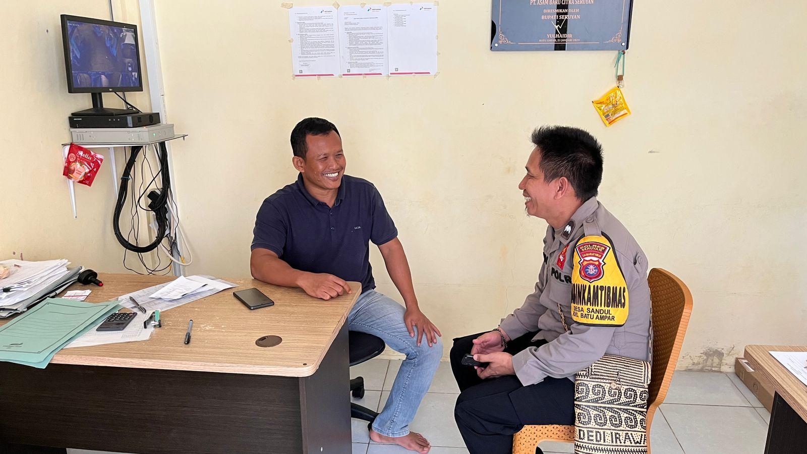 Personel Polsubsektor Batu Ampar Polsek Seruyan Tengah melaksanakan kegiatan sambang dan monitoring di SPBU yang berlokasi di Jalan Lintas Kabupaten RT. 02 RW 01, Desa Sandul, Kecamatan Batu Ampar, Minggu (19/4/2026) pagi. Kegiatan yang berlangsung mulai pukul 09.00 WIB hingga selesai ini dipimpin oleh Kapolsubsektor Batu Ampar AIPDA Frengky Susanto.