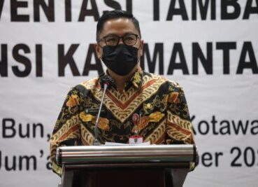 Asisten Bidang Ekobang Setda Provinsi Kalteng Leonard S Ampung saat membuka FGD Prospek dan Investasi Tambak Udang Vaname di Provinsi Kalteng di Avila Hotel Pangkalan Bun, Kabupaten Kobar, Jumat (10/12/2021). (Media Dayak/MMC Kalteng)