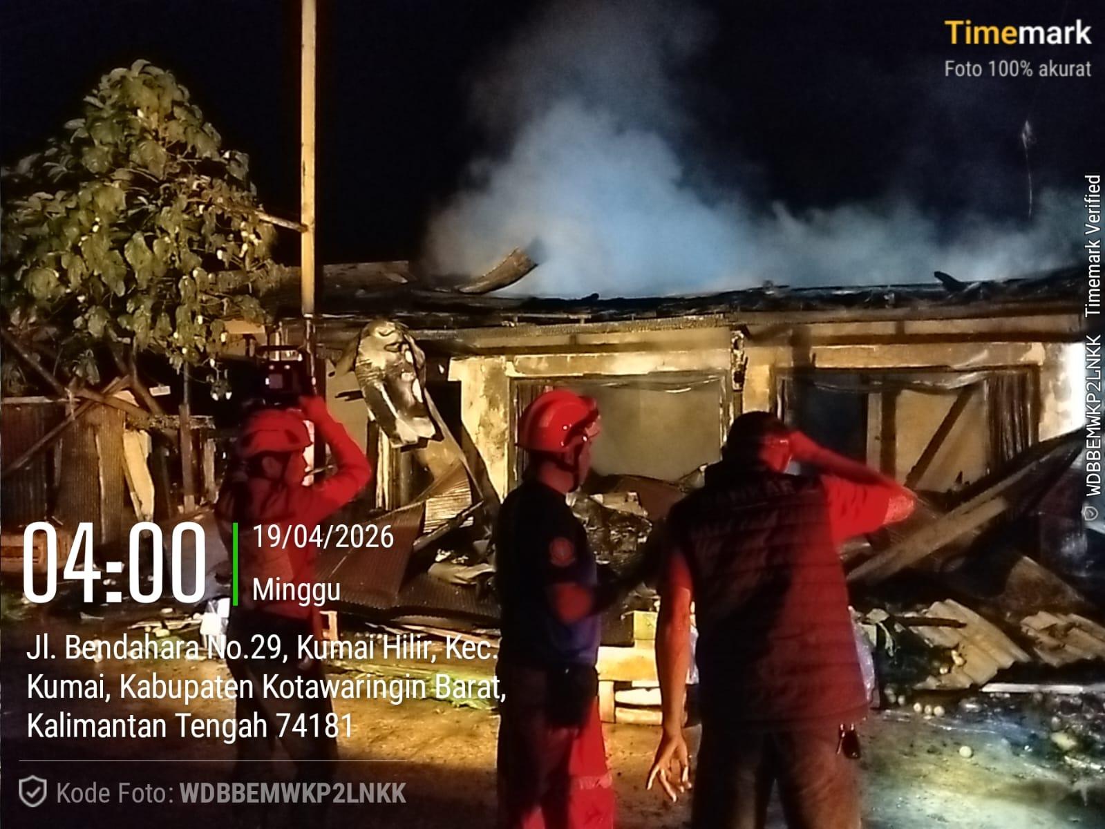 Kebakaran melanda sebuah rumah toko (ruko) di Jalan Pangeran Bendahara RT 8, Kelurahan Kumai Hilir, Kabupaten Kotawaringin Barat (Kobar), Minggu (19/4/2026) dini hari.
