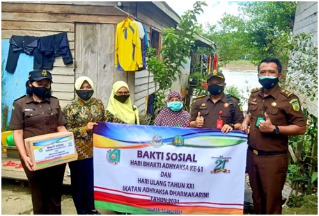 Dalam rangka memperingati Hari Adhyaksa ke 61 dan Hari Ulang tahun XXI Ikatan Adhyaksa Dharmakarini, Kejaksaan Negeri Barito Utara (Kejari Barut) melaksanakan Bhakti Sosial dengan membagikan sembako dan vitamin C kepada masyarakat serta membagikan masker untuk mencegah penyebaran COVID-19.
