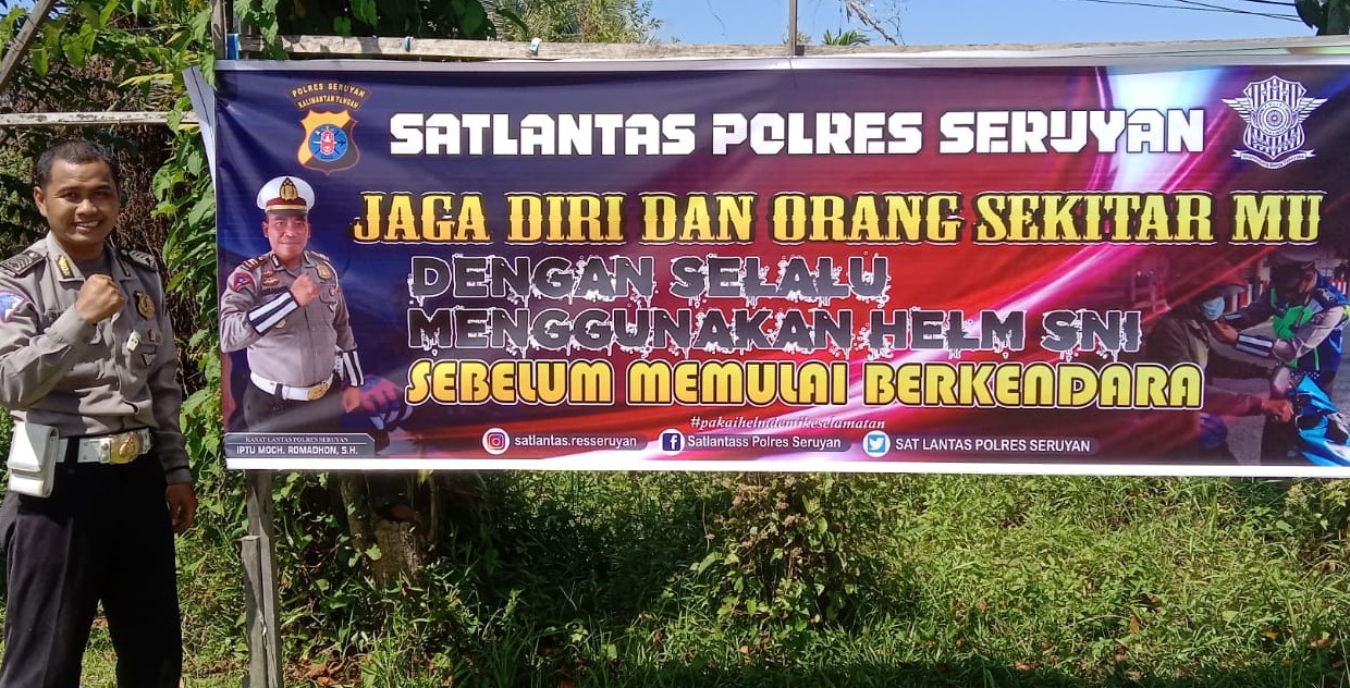 Melalui Unit Kamsel Satlantas Polres Seruyan melakukan pemasangan spanduk yang berisi himbauan terkait wajib memakai helm dan wajib mengklik helm bagi pengguna roda dua di lokasi strategis Kuala pembuang.