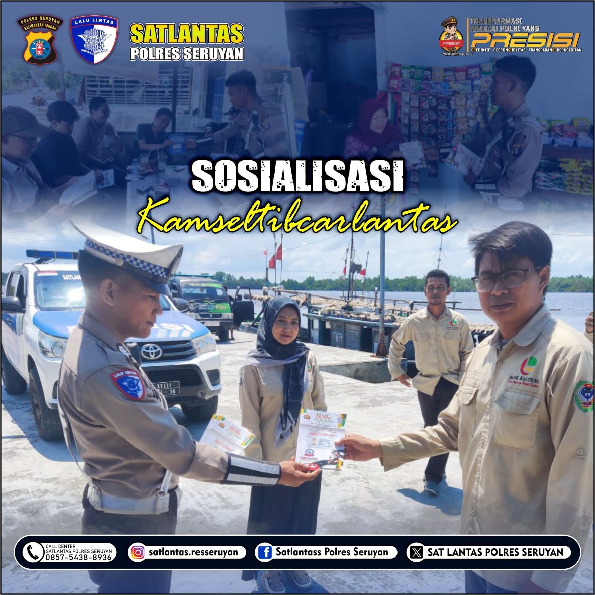 Kali ini, personel Satlantas Polres Seruyan kembali melakukan kegiatan sosialisasi kepada masyarakat sekitar yang terlihat tengah bersantai terkait keselamatan dalam berlalu lintas (Kamseltibcarlantas), Rabu (30/04/2025) siang pukul 10.00 Wib