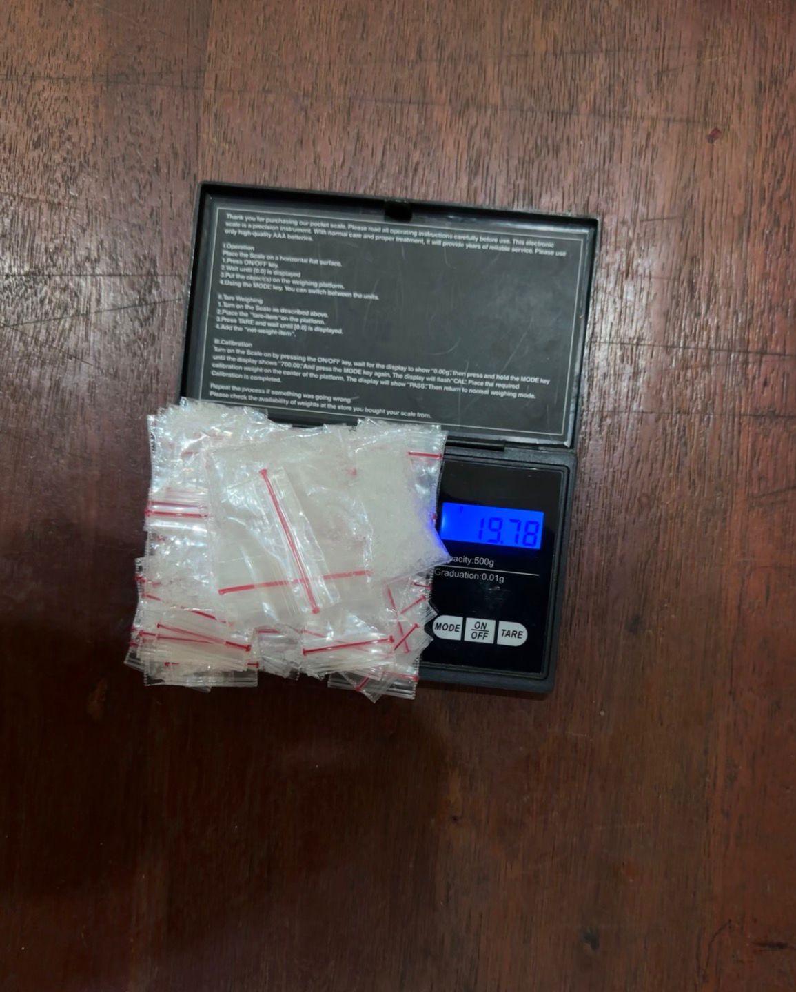 Penggeledahan dilanjutkan dan petugas menemukan sebuah tas warna pink yang berisi gumpalan tisu dengan tiga paket sabu. Selain itu, ditemukan pula delapan plastik klip dengan rincian empat klip berisi masing-masing sepuluh paket sabu dan empat klip lainnya masing-masing berisi sembilan paket sabu.