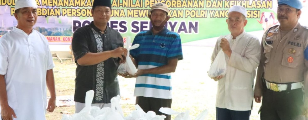 Polres Seruyan Jajaran Polda Kalteng membagikan daging hewan kurban kepada warga masyarakat yang berhak, Minggu (10/7/2022).