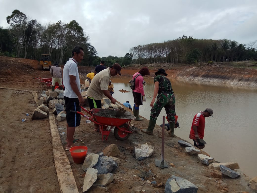Pemasangan siring Batu Embung oleh Satgas TMMD.(Media Dayak/Ist)