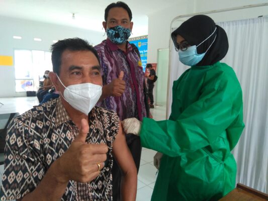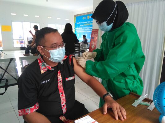 Wartawan Media Dayak.id Nopriaman saat disuntik vaksin Covid-19.