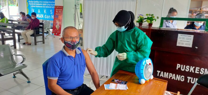 Tokoh agama dan wartawan yang tergabung dalam Persatuan Wartawan Indonesia (PWI) Kabupaten Gunung Mas (Gumas) mengikuti vaksinasi Covid-19. Kegiatan dilaksanakan di Puskesmas Tampang Tumbang Anjir, Kecamatan Kurun, Kabupaten Gumas, Sabtu (20/3).