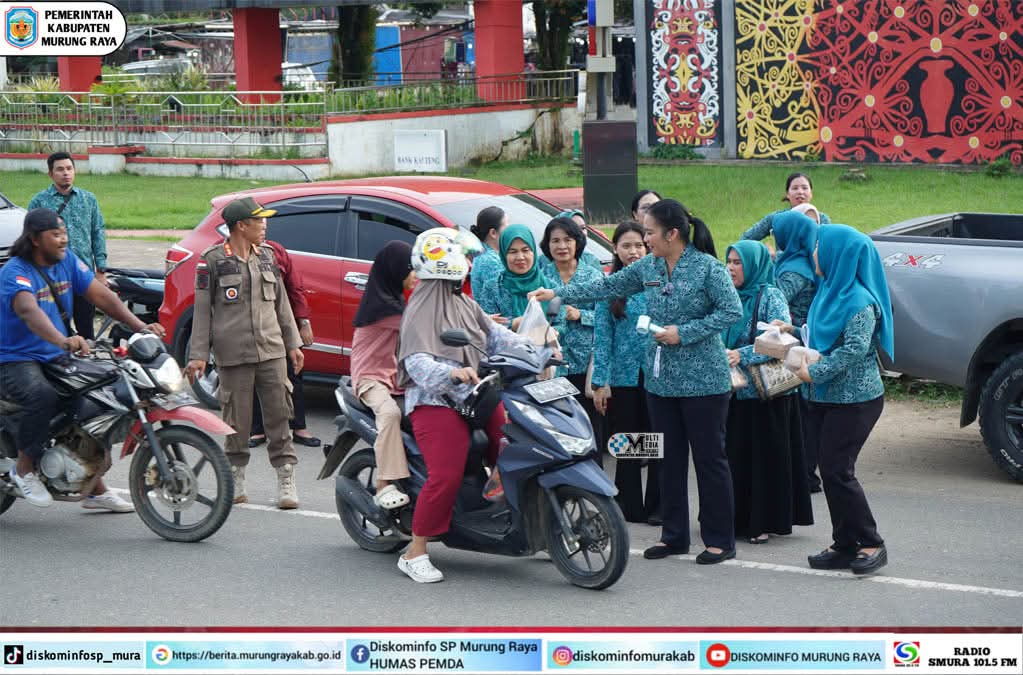 Dalam rangka Semarak Hari Kesatuan Gerak PKK Ke-54 dan menyambut bulan suci ramadan, TP-PKK Kabupaten Murung Raya (Mura) berbagi ribuan takjil kepada masyarakat yang melintas jalan Jenderal Sudirman/ sekitaran bundaran emas Kota Puruk Cahu, rabu (4/3/2026).
