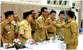 Wakil Bupati Barito Utara Sugianto Panala Putra bersama Bupati dan Wakil Bupati se kalteng saat menghadiri Rakor Penanggulangan Kemiskinan di Provinsi Kalteng tahun 2019 di aula Bappedalitbang Kalteng, Selasa (9/7).(Media Dayak: Diskominfosandi Barut)