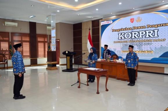 Pengukuhan Dewan Pengurus Korps Pegawai Republik Indonesia (KORPRI) Kabupaten Kotawaringin Barat (Kobar) periode 2026–2030 tak hanya menjadi seremoni organisasi, tetapi juga momentum penegasan arah kebijakan dalam peningkatan kualitas aparatur sipil negara (ASN). Kegiatan di Aula Sangga Buana Kantor Bupati Kobar, Kamis (16/4/2026).