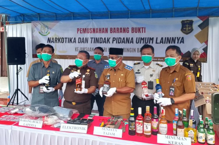 Wakil Bupati Kotawaringin Barat (Kobar), Suyanto, menghadiri kegiatan pemusnahan barang bukti perkara tindak pidana umum dan tindak pidana ringan yang dilaksanakan oleh Kejaksaan Negeri Kotawaringin Barat di halaman kantor kejaksaan setempat, Selasa (7/4/2026).
