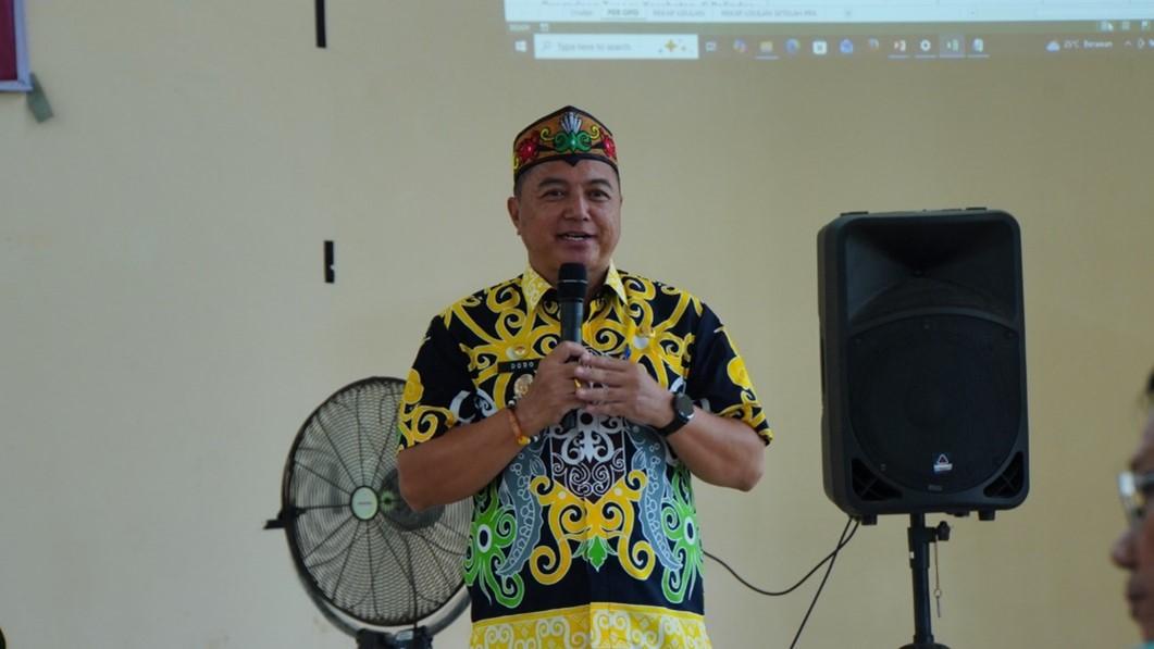 SAMBUTAN – Wakil Bupati Kapuas, Dodo, saat memberikan sambutan pada Musyawarah Perencanaan Pembangunan (Musrenbang) tingkat Kecamatan Kapuas Tengah dalam rangka penyusunan Rencana Kerja Pemerintah Daerah (RKPD) Kabupaten Kapuas Tahun 2027, bertempat di Aula Kantor Kecamatan Mandau Talawang, Kamis (29/1). Media Dayak/ hmskmf)