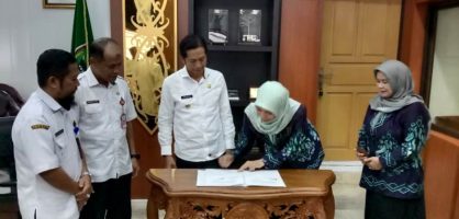 TEKEN MOU-Pemerintah Kabupaten Barito Utara dalam hal ini Pj Bupati Barito Utara Drs Muhlis bersama Universitas Islam Kalimantan (UNISKA) Muhammad Arsyad Al Banjari dalam hal ini Wakil Rektor IV Uniska, Galuh Nashrulloh teken MoU terkait masalah pendidikan, di ruang kerja bupati, Rabu (5/6/2024).(Media Dayak/Lana)